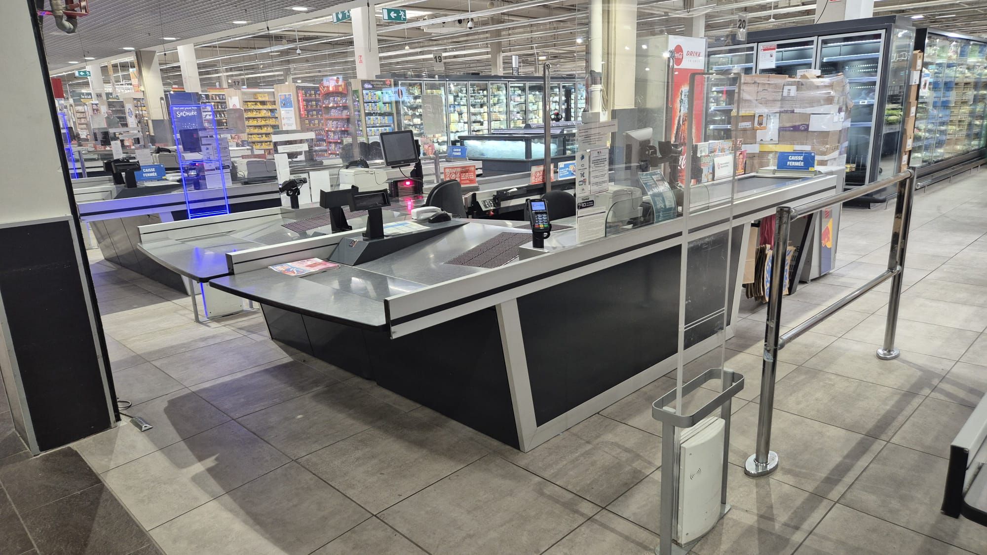 Installation portillon automatique ITAB dans hypermarché E.Leclerc Bergerac