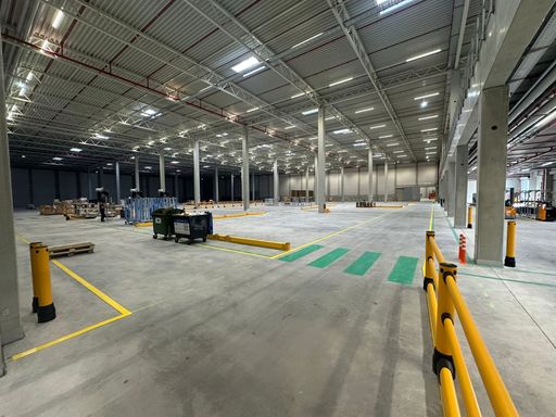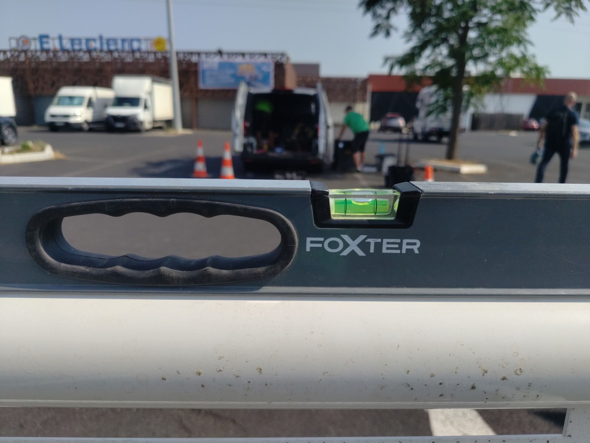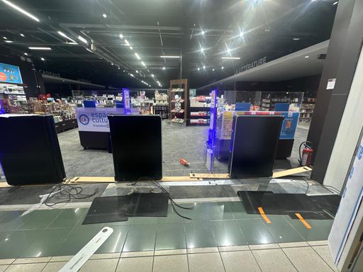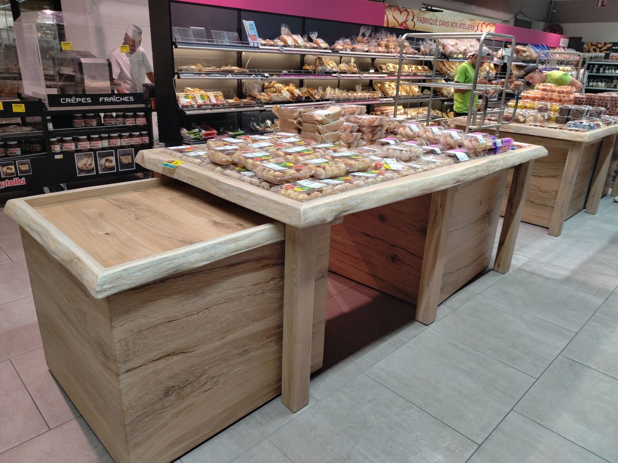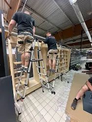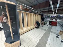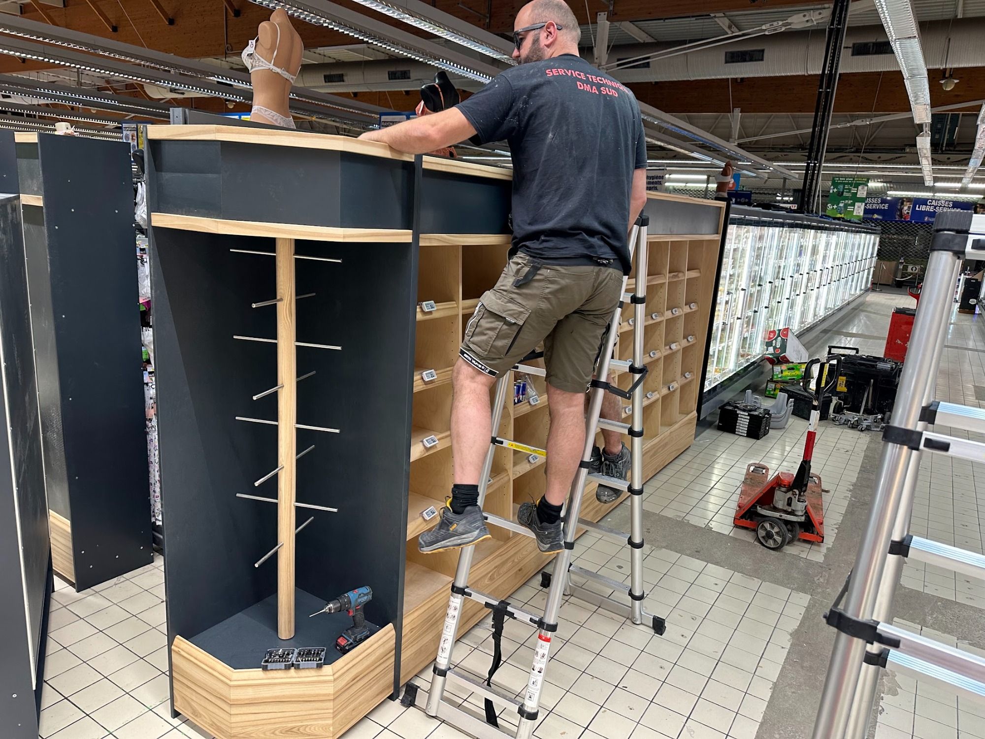 Installation de dalles céramiques clipsables, déplacement de gondoles, mise en place de protections