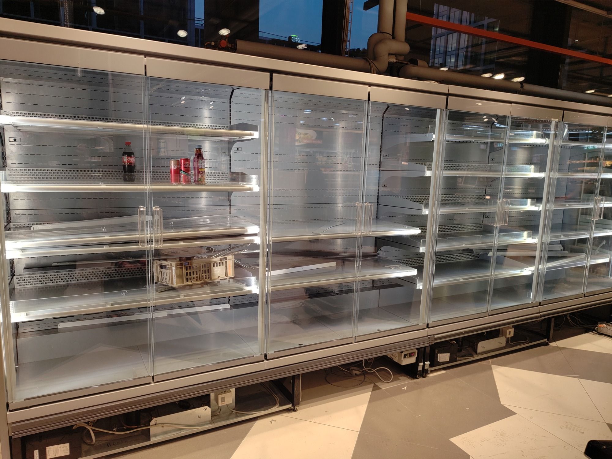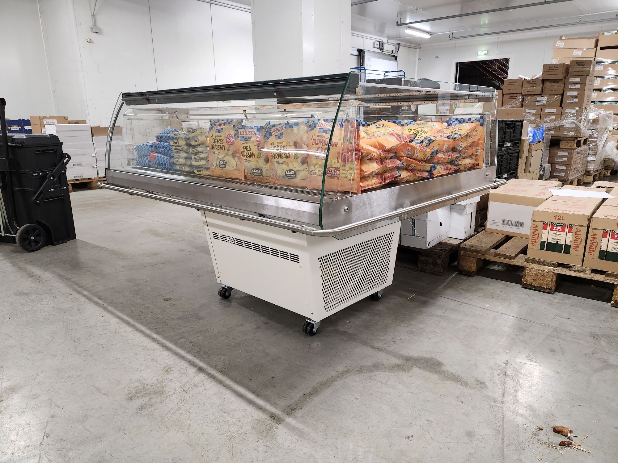 Installation de vitrines réfrigérées positives et négatives pour Drive, création de lanières coulissantes pour faciliter la mise en place des "Rolse".